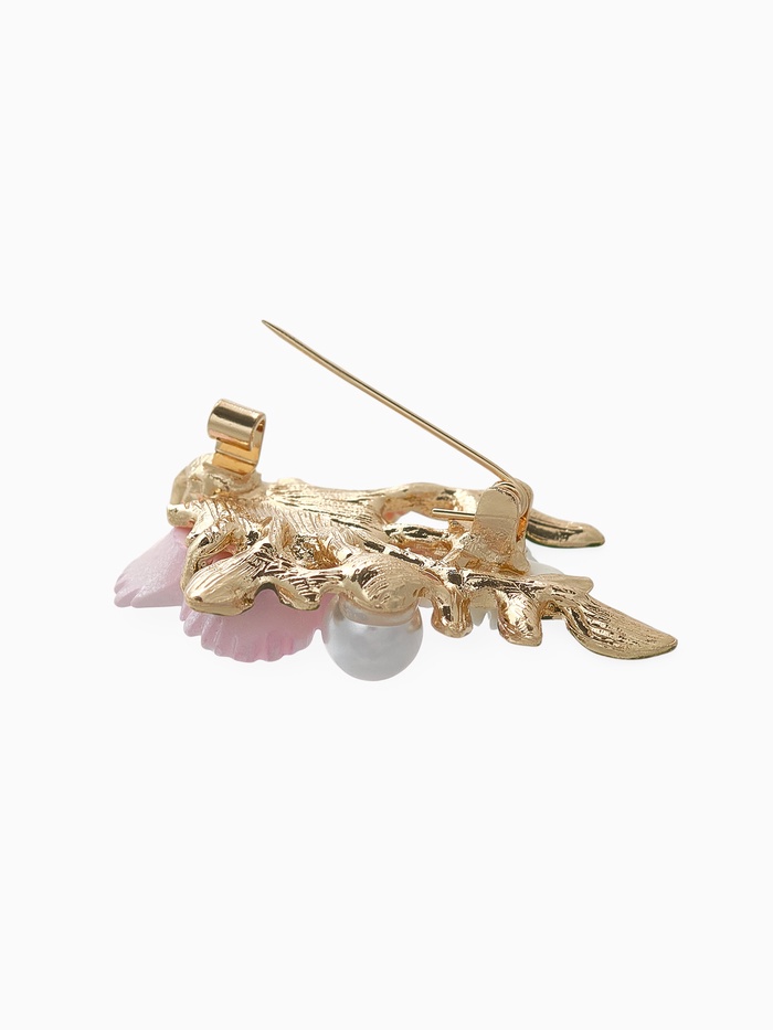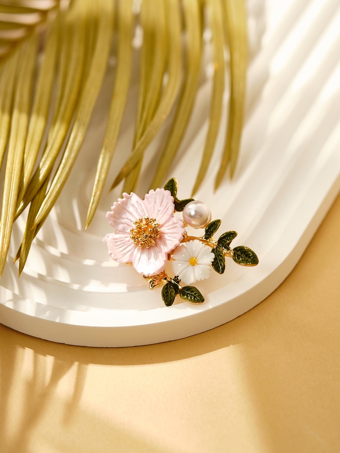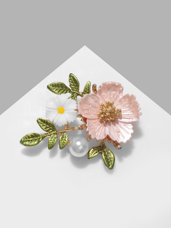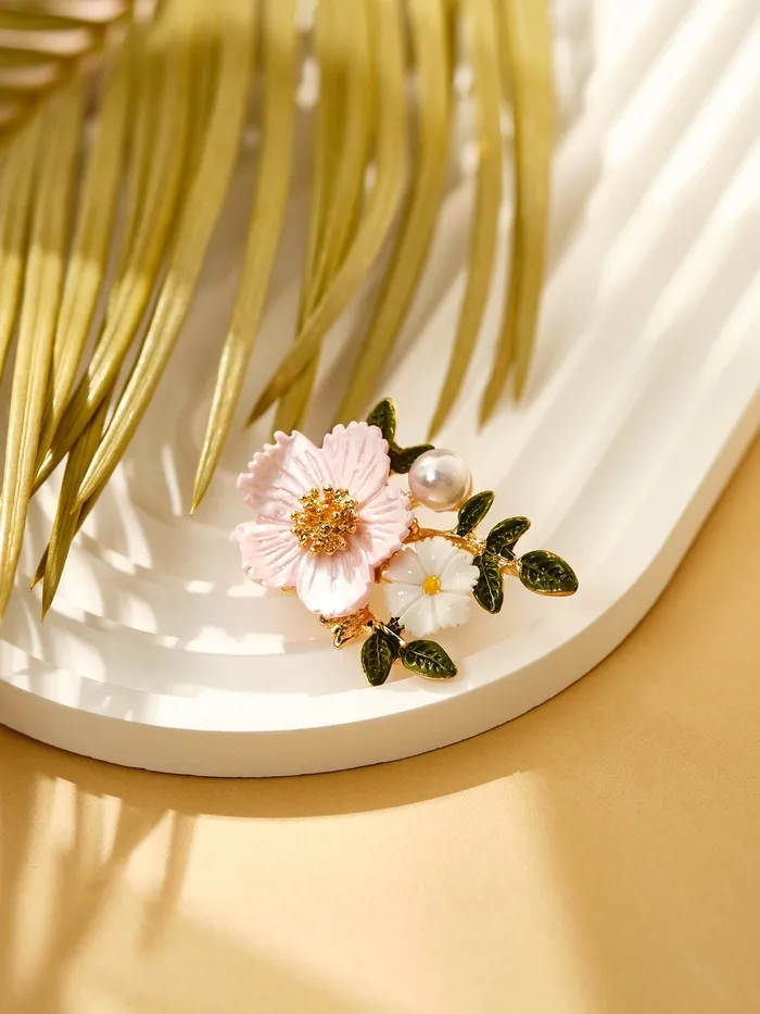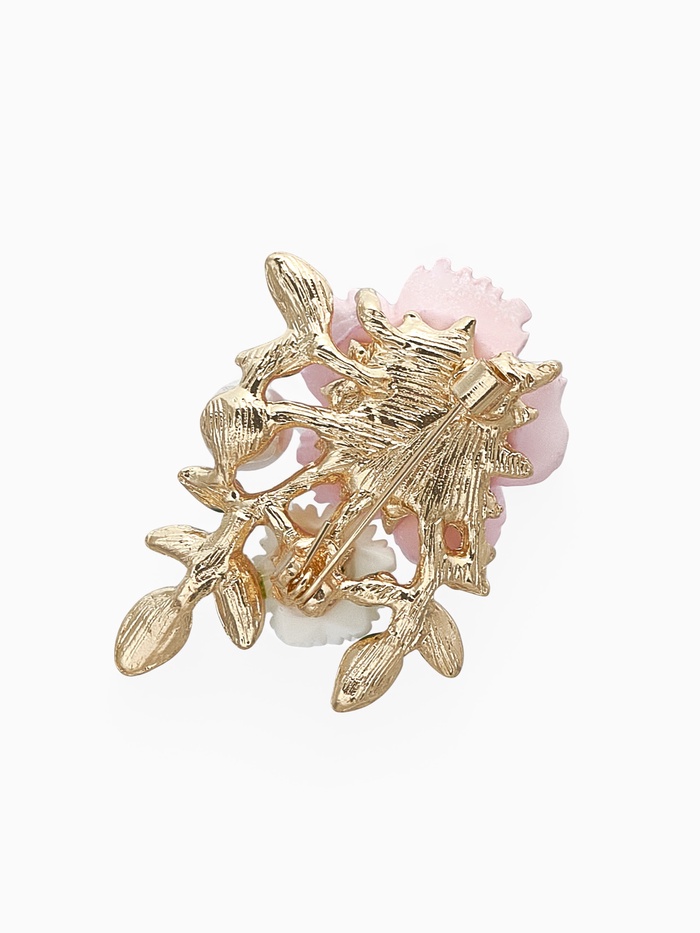 Брошь «Цветы» на ветке, цвет розово-белый в золоте — Характеристики