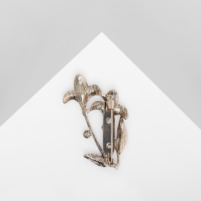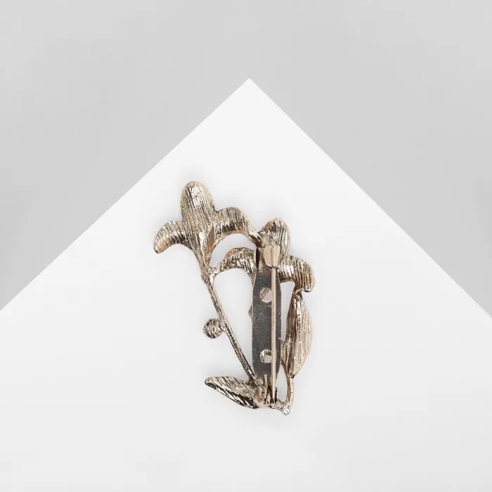 Металлическое основание с эффектом чернёного золота придаёт изделию благородную глубину и необычную фактуру, а белые стразы создают нежное сияние, напоминающее утреннюю росу на лепестках. Такое сочетание оттенков делает брошь универсальным аксессуаром, который гармонично впишется как в повседневный, так и в праздничный гардероб.