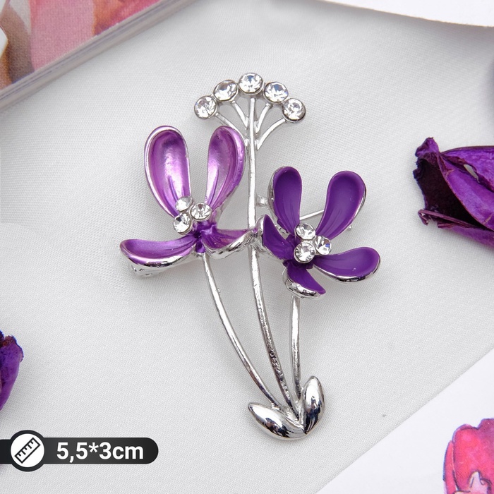 Брошь «Цветы полевые», цвет фиолетовый в серебре — Характеристики