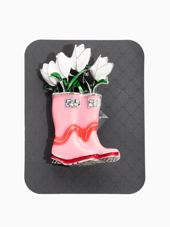 Пусть весеннее настроение поселится в вашем сердце с брошь в виде букета тюльпанов, уютно устроившегося в паре ботинок, представленных в нежных бело-розовых оттенках и украшенных серебряным обрамлением. Этот уникальный аксессуар наверняка станет центральной точкой притяжения взглядов, даря вам заряд радости и счастья.