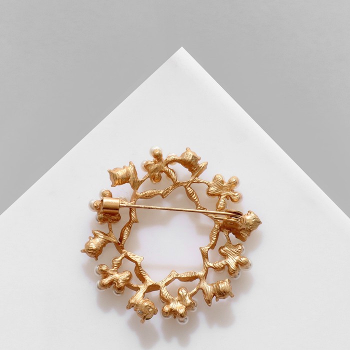 Брошь «Цветы» в венке, цвет белый в матовом золоте — Характеристики
