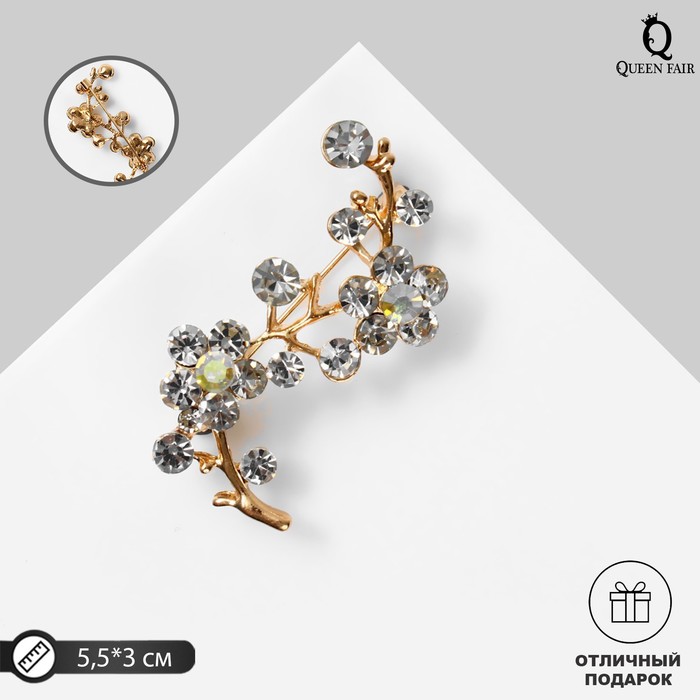 Брошь «Цветы» ветвь яблони, цвет белый в золоте — Характеристики