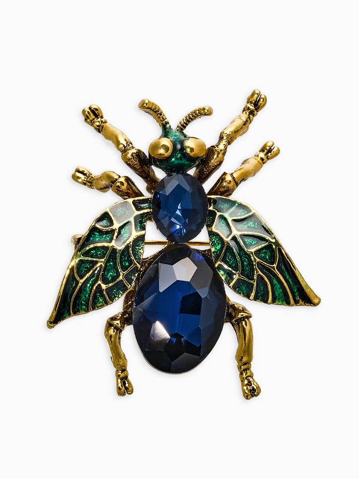 - Высокое качество материалов: металлическое основание с золотым покрытием и прочные вставки из эмали и страз гарантируют долговечность и сохранение яркости цвета.