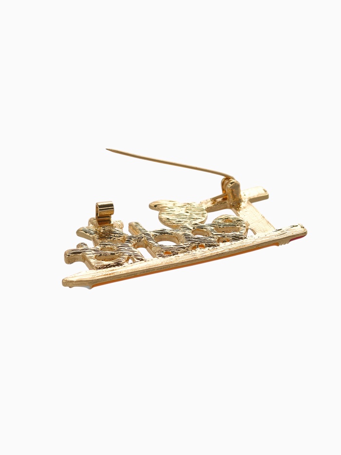 Металл с золотым покрытием обеспечивает прочность и долговечность, а вставки из эмали и страз создают привлекательную игру цвета и света, подчёркивая индивидуальность и творческий подход к аксессуарам. Брошь легко впишется в любой гардероб, добавляя яркий акцент как к повседневному, так и к праздничному стилю.