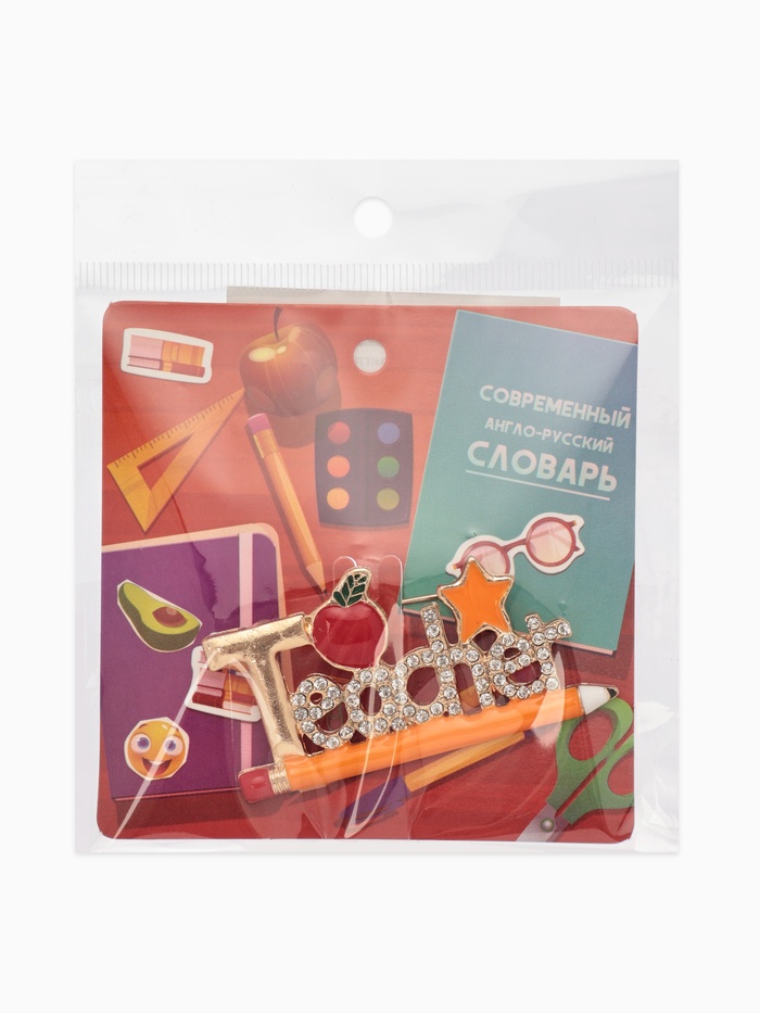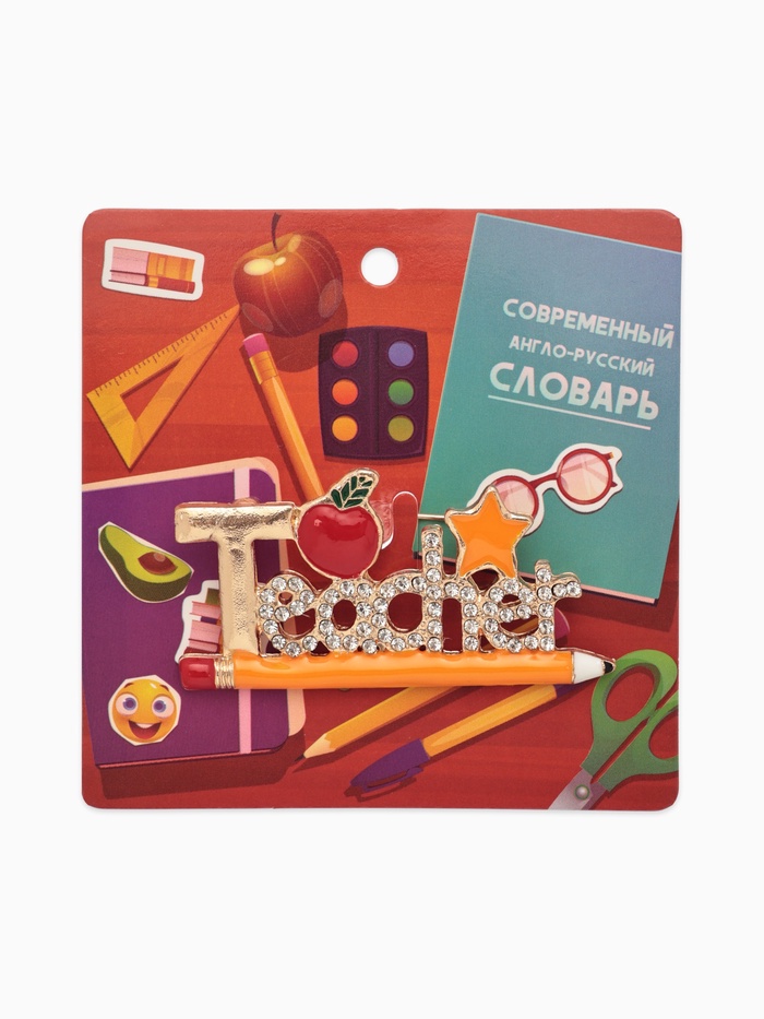Брошь «Учитель» английского, цветная в золоте — Характеристики
