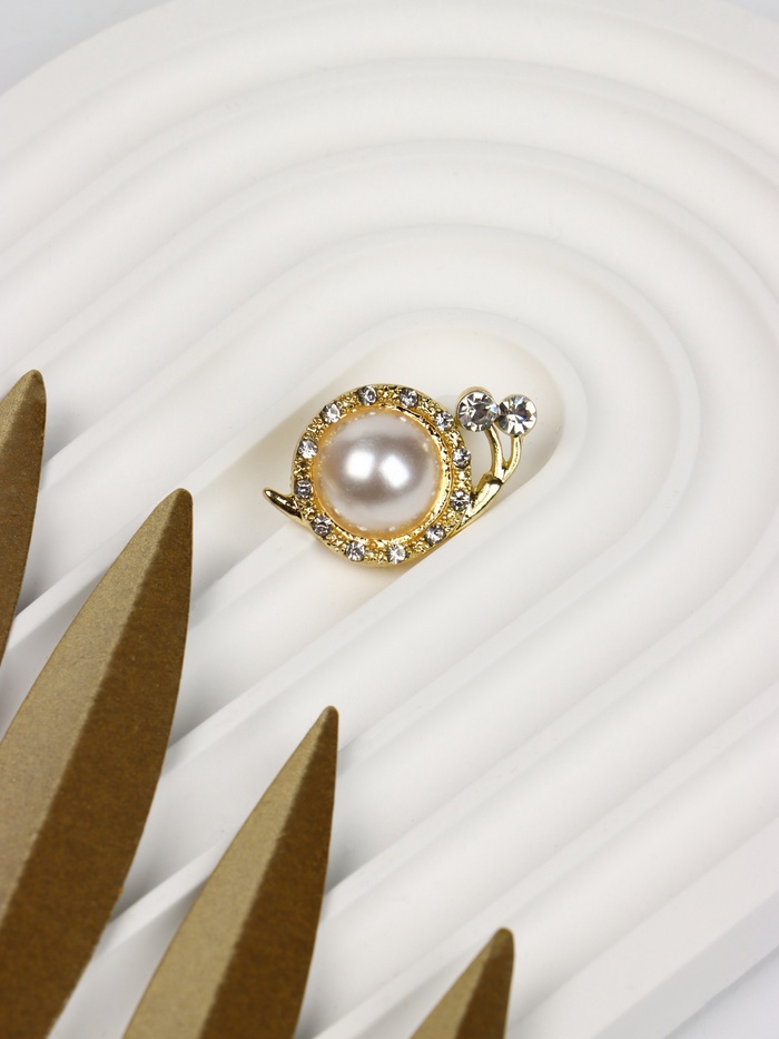 - Очаровательный дизайн: форма улитки с жемчужной вставкой и сияющими стразами придаёт образу лёгкость и оригинальность.