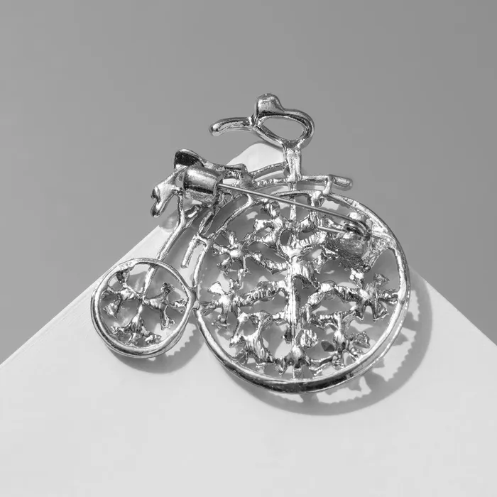 Брошь «Велосипед» ретро, белая в серебре — Характеристики