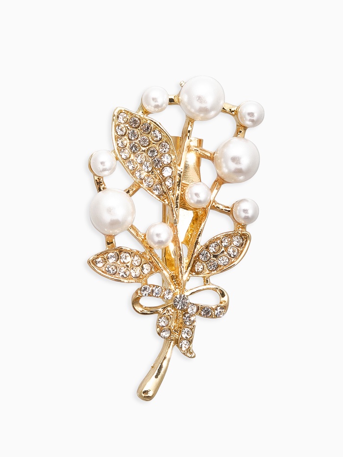 Изящная брошь с белыми жемчужными ягодами на золотистой основе станет гармоничным дополнением к образу. Размер украшения — 5,5 см, что делает его заметным, но при этом лёгким аксессуаром для женщин разных поколений.