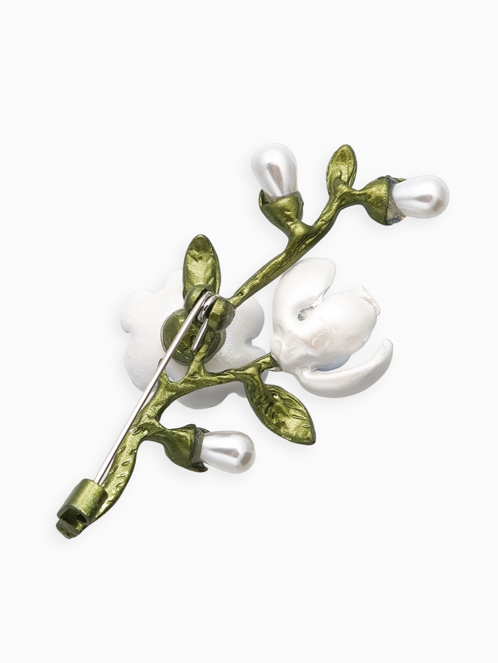 Брошь "Веточка магнолии" цветок, с эмалью, цветная — Характеристики