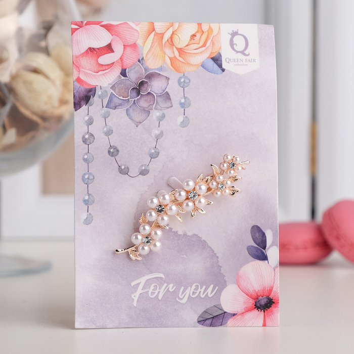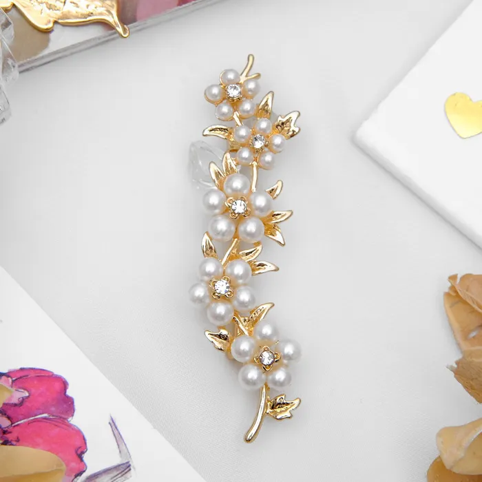 Изящная брошь с белыми цветами на золотистой основе станет утончённым дополнением к вашему образу. С длиной 6,5 см, этот аксессуар подходит для женщин разных возрастов и станет символом нежности и природной красоты.