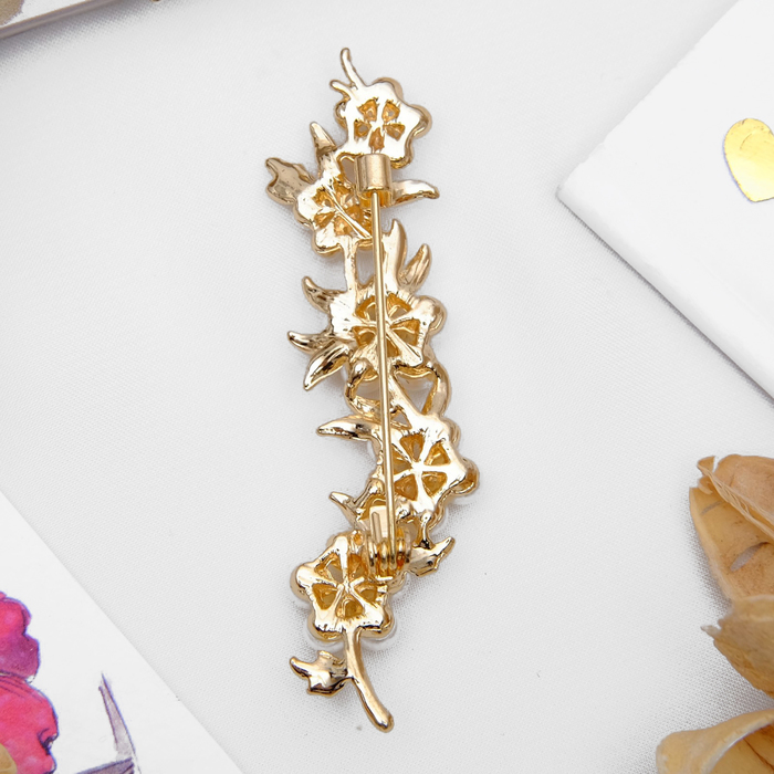 Брошь «Веточка с цветами», цвет белый в золоте — Характеристики