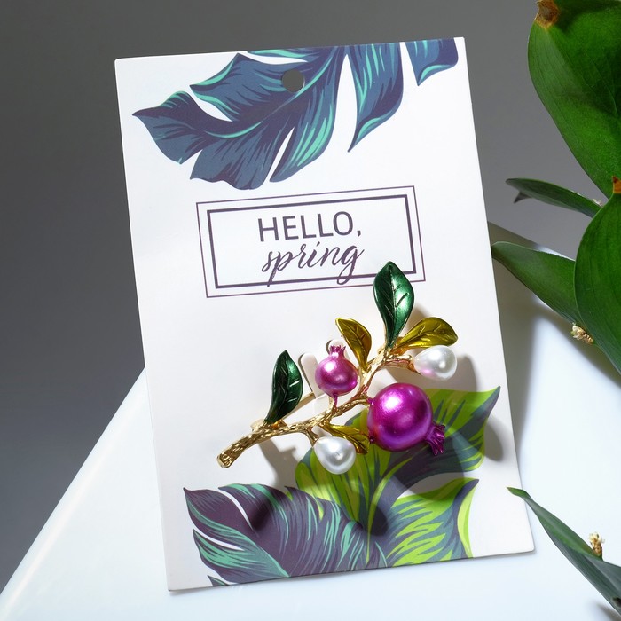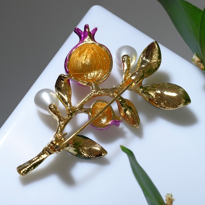 Погрузитесь в мир ярких эмоций и утончённого стиля с этой великолепной брошью в форме гранатовой ветви. Её разноцветное оформление в сочетании с золотистой фурнитурой делает этот аксессуар поистине уникальным. Длина 6,5 см позволяет легко интегрировать брошь в любой образ, добавляя нотки изысканности и оригинальности.