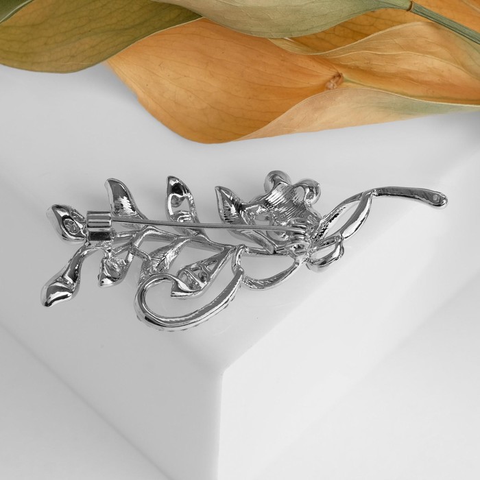 Брошь «Ветвь» с цветком, белая в серебре — Характеристики