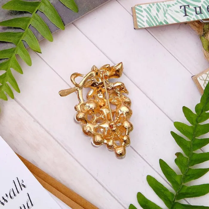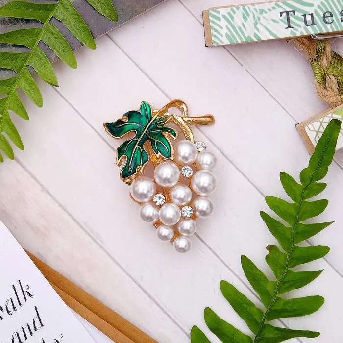 Элегантная брошь в виде виноградной веточки станет изысканным дополнением к любому наряду, добавляя нотку утонченности и стиля. Эта изящная деталь украшена искусственным жемчугом и стразами, что делает её идеальным выбором для женщин, стремящихся подчеркнуть свою индивидуальность. Она прекрасно подойдет в качестве подарка для мамы, сестры, дочери или подруги, а универсальная тематика делает её подходящей для любого праздника.