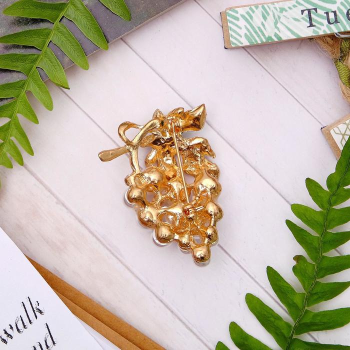 Брошь «Виноградная веточка» бело-зелёная в золоте