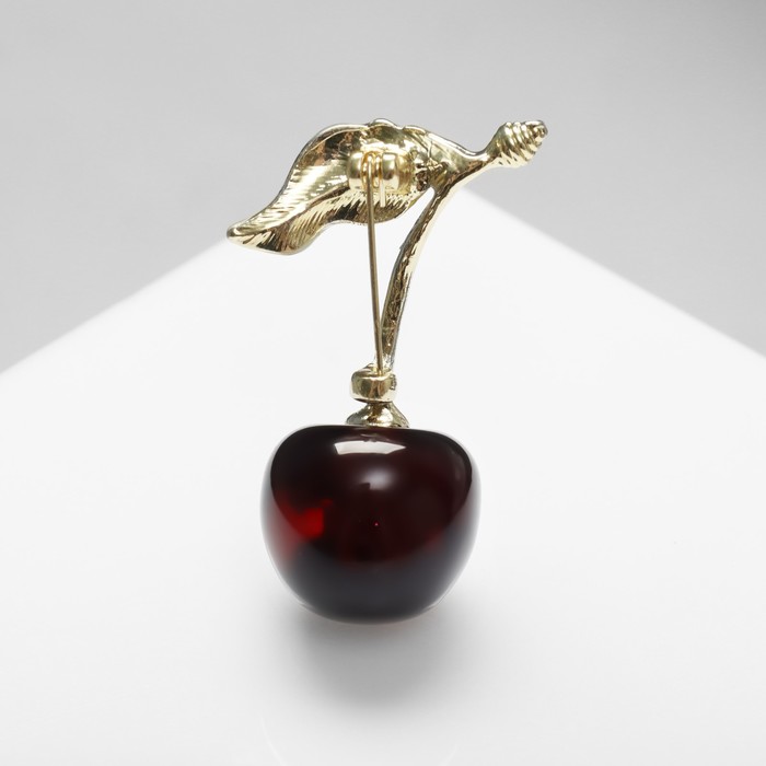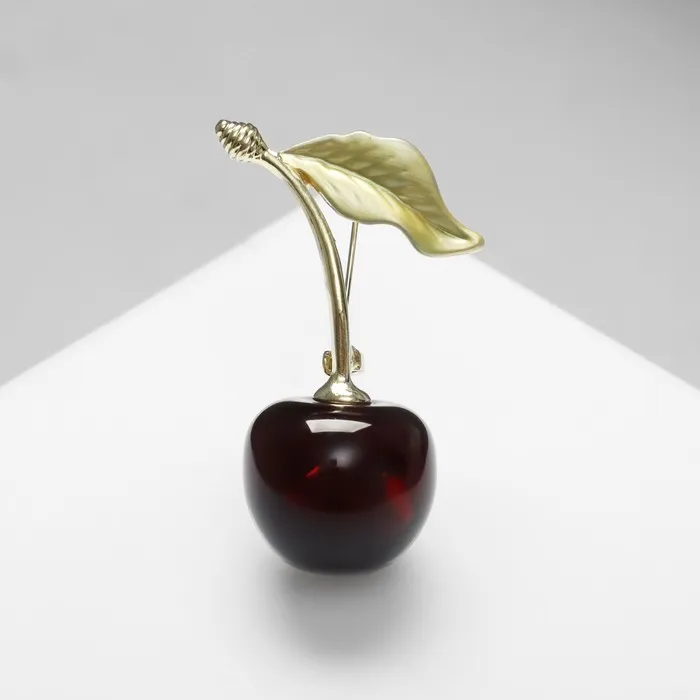 Брошь «Вишенка» с листочком, бордово-зелёная в золоте — Характеристики