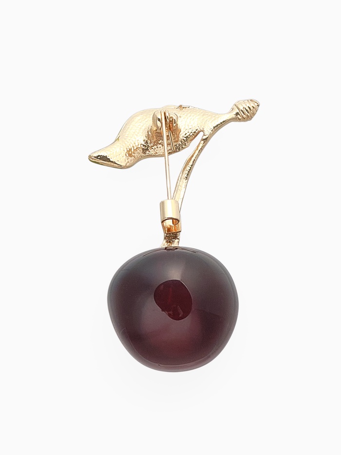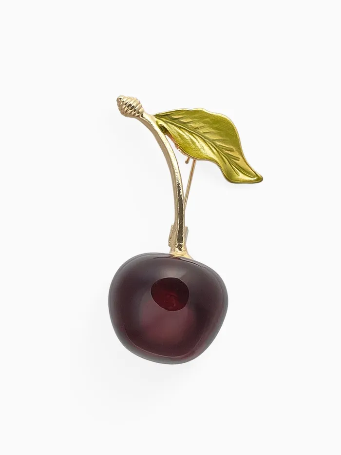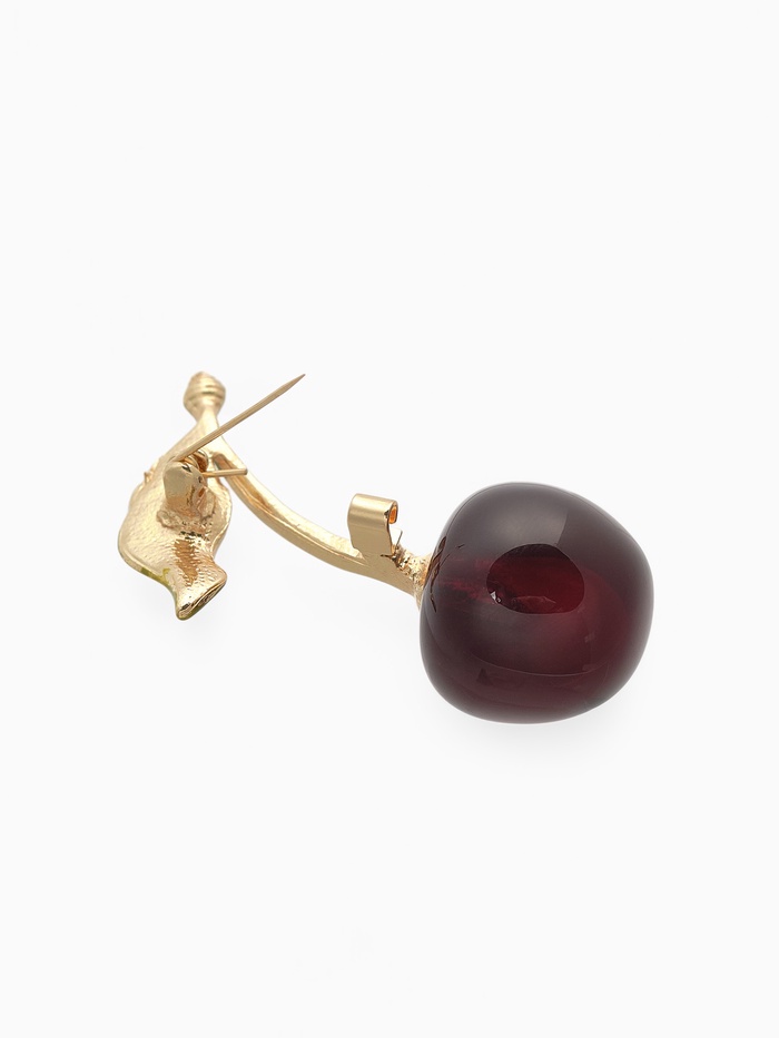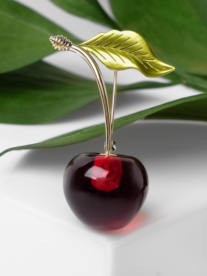 Брошь «Вишенка» с листочком, цвет бордово-зелёный в золоте — Характеристики
