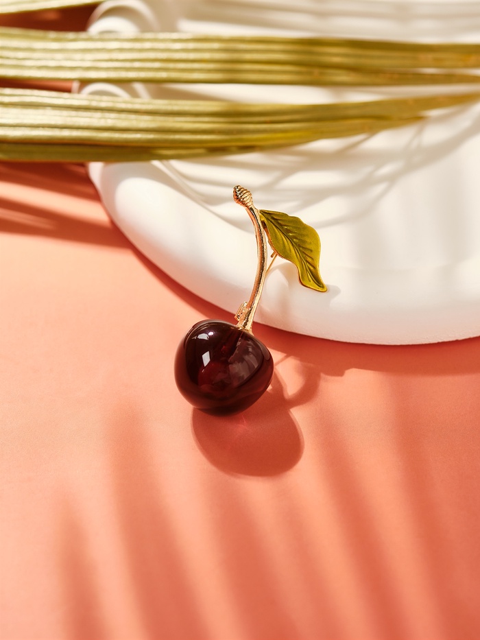 Металлическое основание украшено эмалью и пластиковыми вставками, что создаёт эффект глубины и насыщенности цвета, подчёркивая тематическую связь с фруктами и ягодами. Такой дизайн не только привлекает внимание, но и демонстрирует высокий уровень мастерства исполнения.