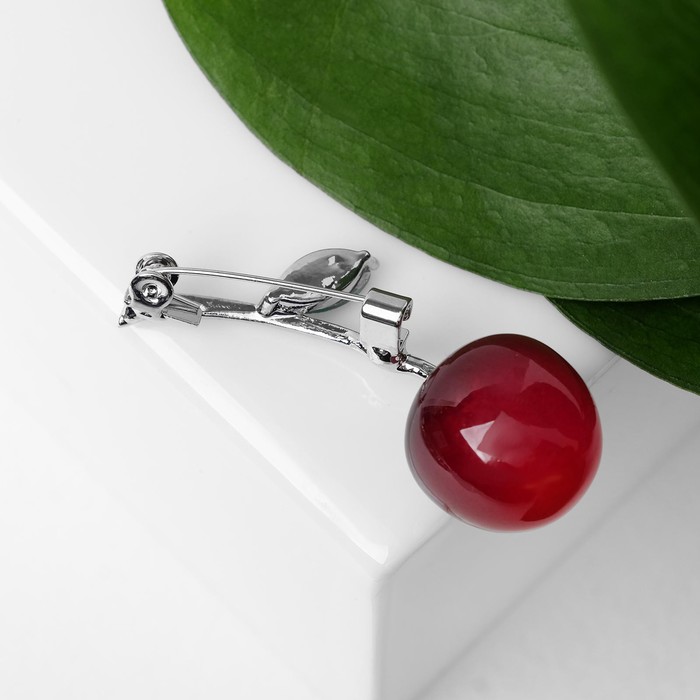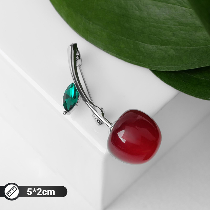 Брошь «Вишенка», цвет бордово-зелёный в серебре — Характеристики