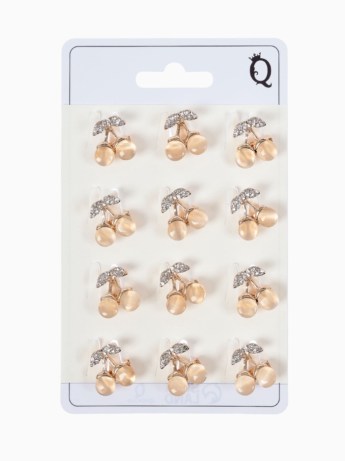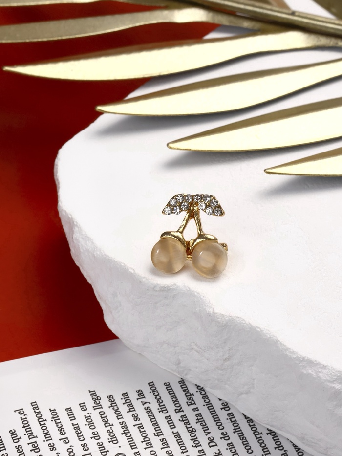 Брошь «Вишенки» наливные, цвет белый в жёлтом золоте (неделимая фасовка 12 шт., цена за шт.) — Характеристики