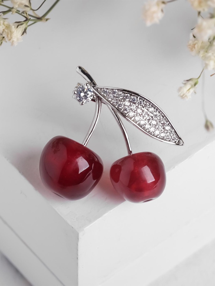 Брошь «Вишни» наливные, цвет бордовый в серебре — Характеристики