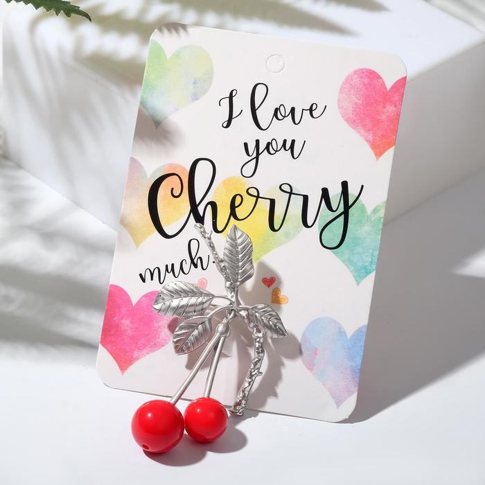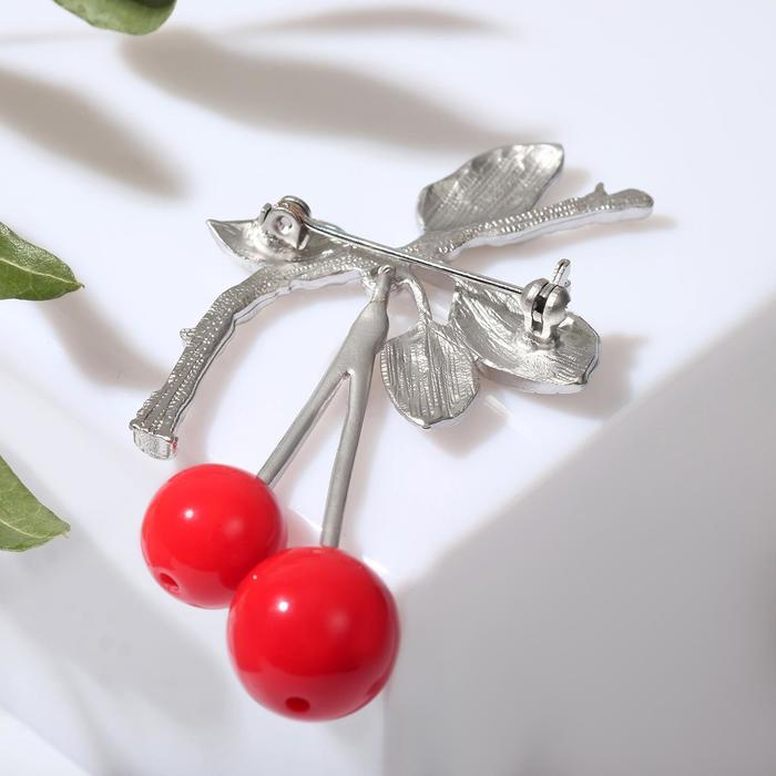 Брошь «Вишня» с листиками, подвижная, цвет красный в матовом серебре — Характеристики