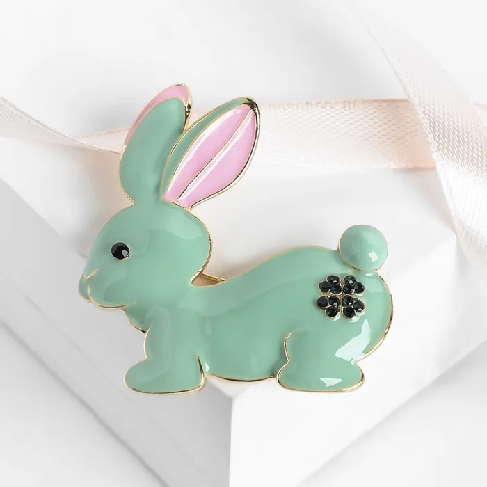 Очаровательная брошь в виде зайчонка в мятном цвете с золотистой фурнитурой станет ярким акцентом в вашем образе. С длиной всего 4,5 см, это украшение идеально подходит для женщин и девочек, добавляя нотку игривости и нежности в любой наряд. Тематика зайца делает её особенно актуальной для весенних праздников, таких как Пасха, но универсальный дизайн позволяет носить её в любое время года.