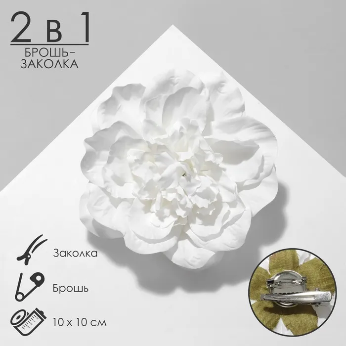 Брошь-заколка текстильная «Цветок» пион, цвет белый — Характеристики