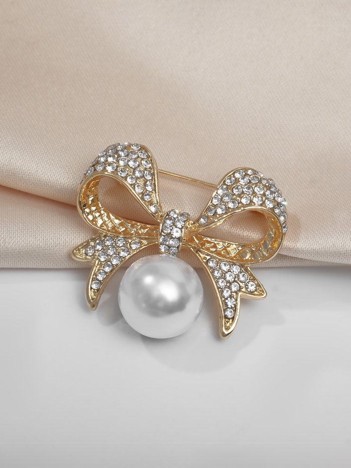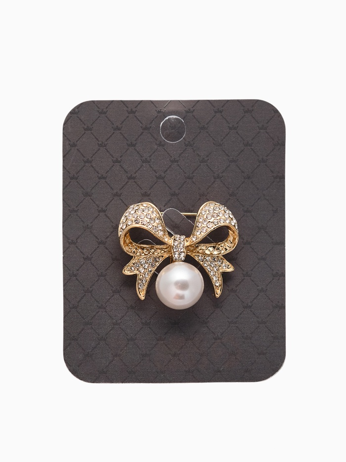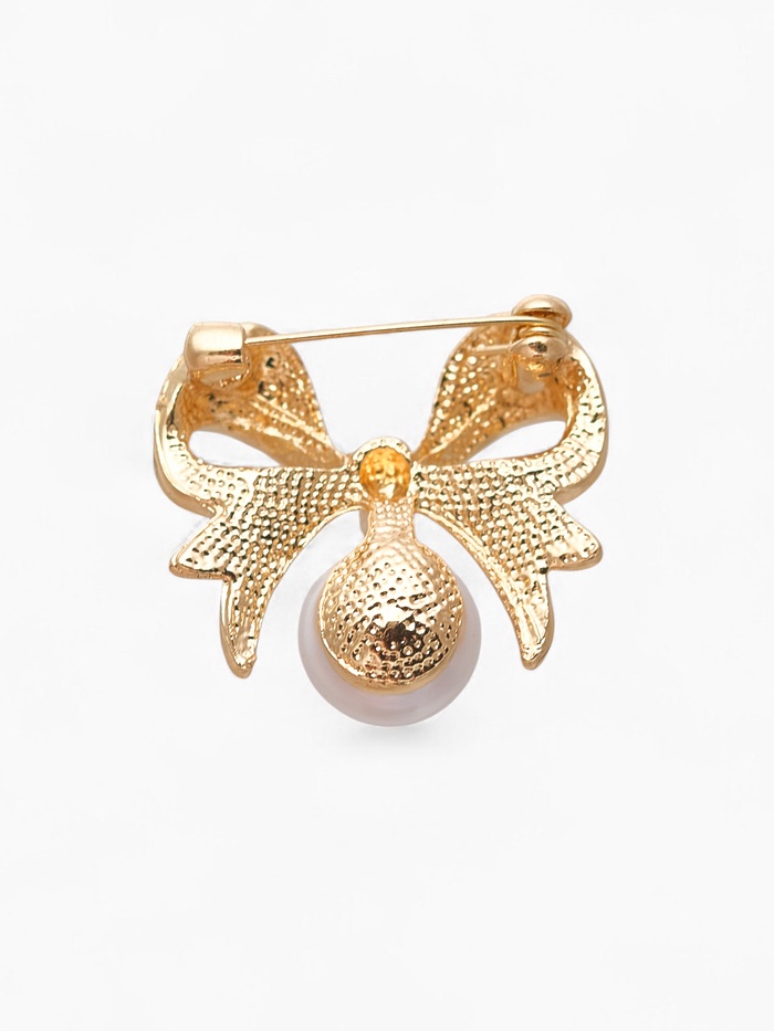 Брошь «Жемчужинка» классический бантик, цвет белый в золоте — Характеристики