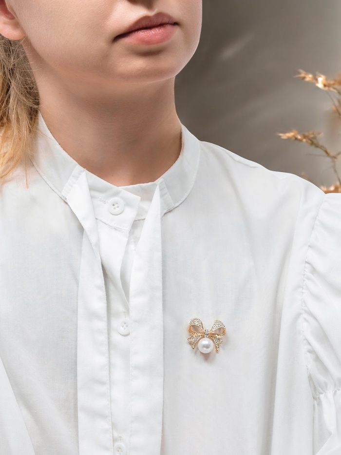 Эта изысканная брошь в виде классического бантика с жемчужной вставкой и золотой фурнитурой станет настоящим акцентом в вашем образе. С длиной всего 3,2 см, она идеально впишется в любой наряд, добавляя нотку элегантности и утончённости. Брошь выполнена из качественного металла, что гарантирует её долговечность и стойкость к внешним воздействиям.