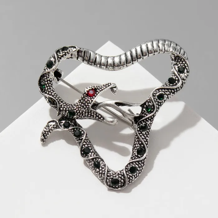Брошь «Змея» гадюка, цвет изумрудно-красный в чернёном серебре — Характеристики