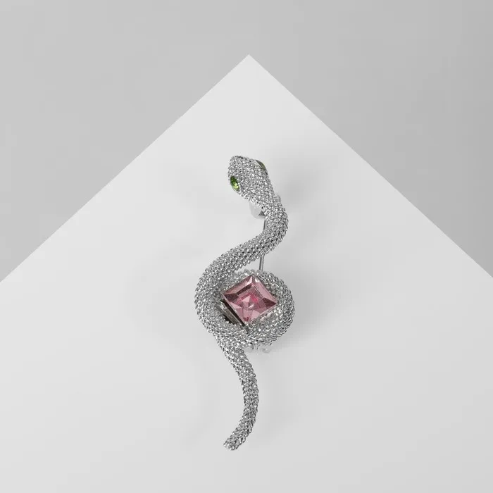 Элегантная брошь в форме змеи с ромбовидным узором — это сочетание изящества и символизма, воплощённое в изысканном серебряном оттенке с нежными розовыми вставками из стекла. Компактная длина 4,5 см делает её универсальным украшением, способным дополнить как повседневный, так и праздничный образ.