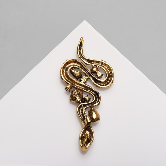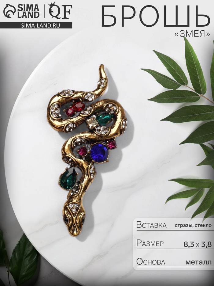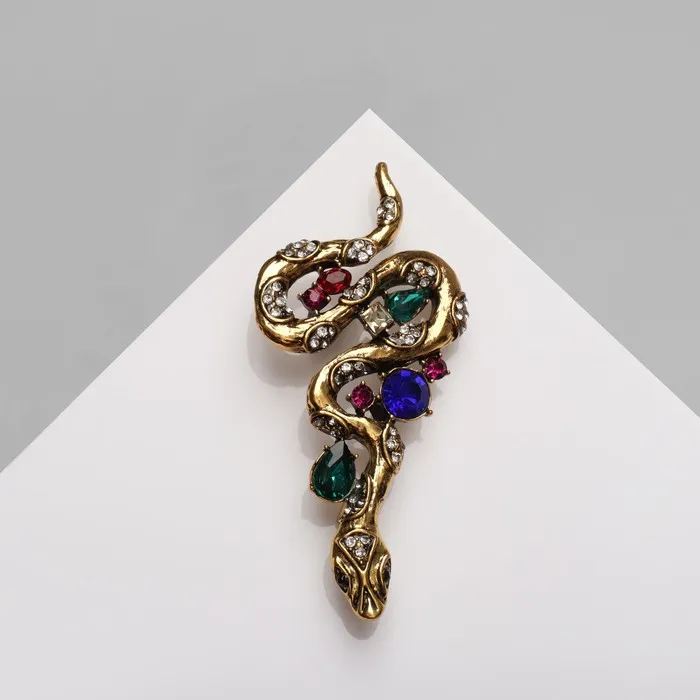 Завораживающая брошь в форме змеи — это не просто украшение, а настоящая находка для тех, кто ценит уникальность и стиль. С её помощью вы сможете подчеркнуть свою индивидуальность и добавить яркий акцент в любой образ. Изготовленная из чернёного золота и украшенная разноцветными стразами, она станет великолепным дополнением к вашему гардеробу.