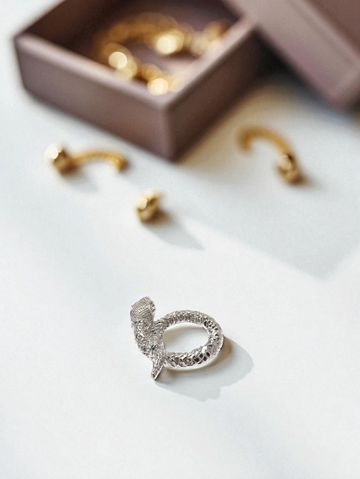 Брошь «Змея» в клубке, цвет белый в серебре — Характеристики