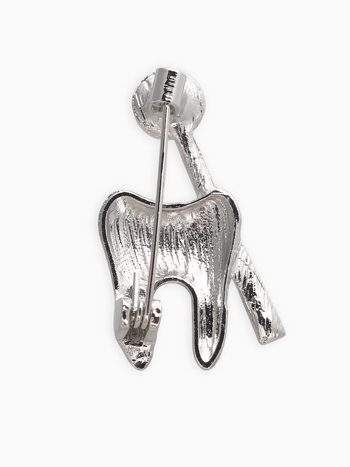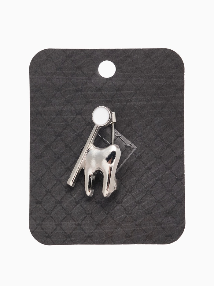 Эта брошь в виде зуба с зеркальной вставкой — изящный аксессуар, который объединяет в себе стиль и профессиональную символику. Выполненная из металла с серебристым покрытием и украшенная белой эмалью, она станет ярким акцентом в образе медицинского работника или стоматолога, подчеркивая их профессионализм и индивидуальность.
