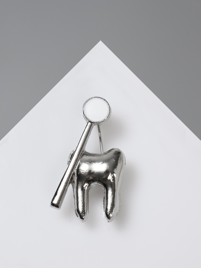 Брошь «Зуб с зеркалом», цвет белый в серебре — Характеристики