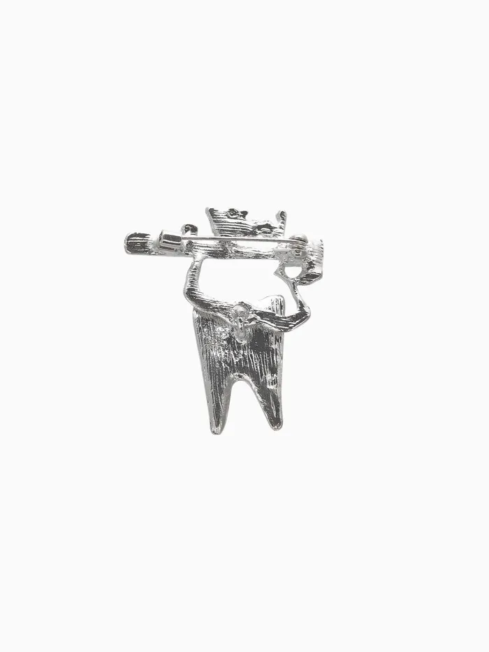 Стильная брошь в форме зуба со щёткой — оригинальное украшение, которое подчеркнёт профессиональную принадлежность и станет ярким акцентом в образе медицинского работника. Чёрно-белая эмаль на серебристом металлическом основании создаёт гармоничное сочетание, отражающее чистоту и аккуратность, столь важные в медицине.