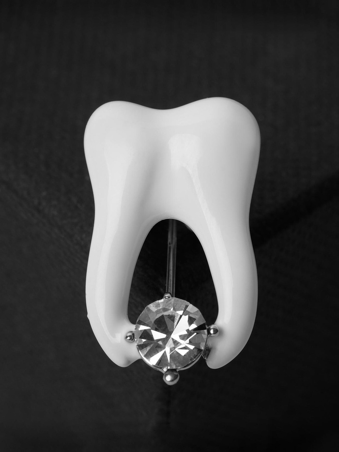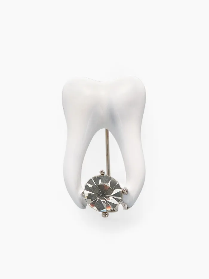 Брошь «Зуб» со стразой, цвет белый в серебре — Характеристики