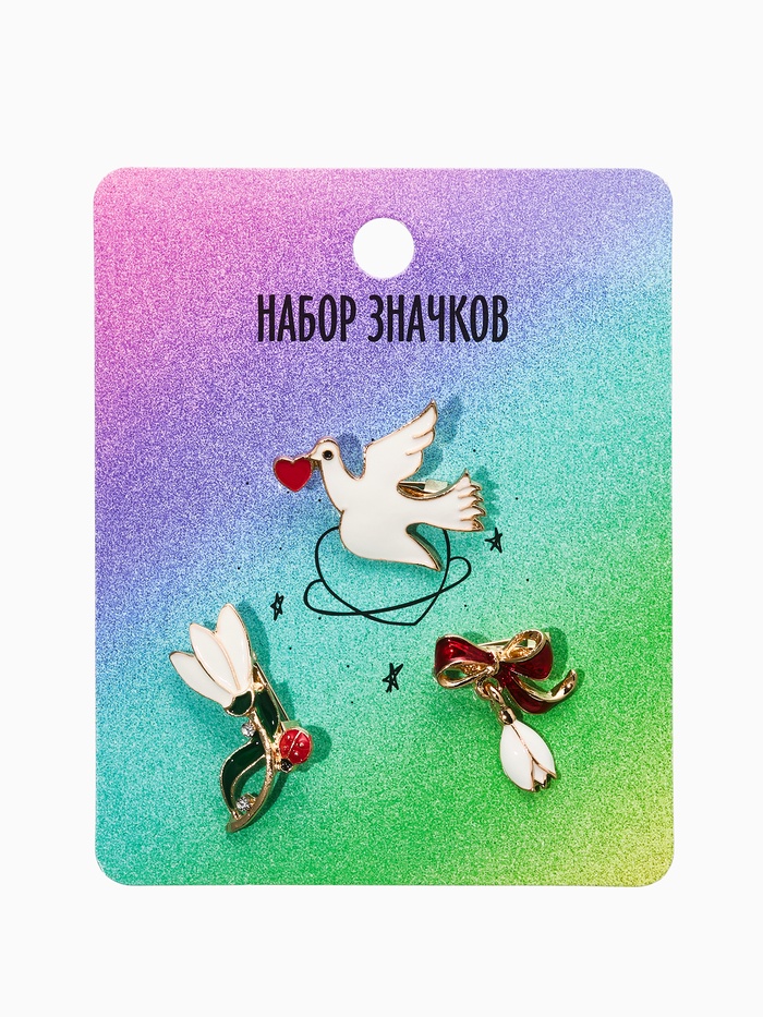 Броши «Голубь, подснежники», набор 3 шт. цветной в золоте — Характеристики