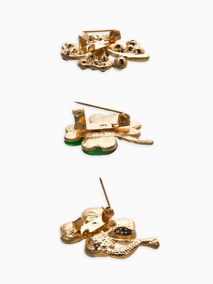 Броши «Клевер», набор 3 шт. зелёные в золоте — Характеристики
