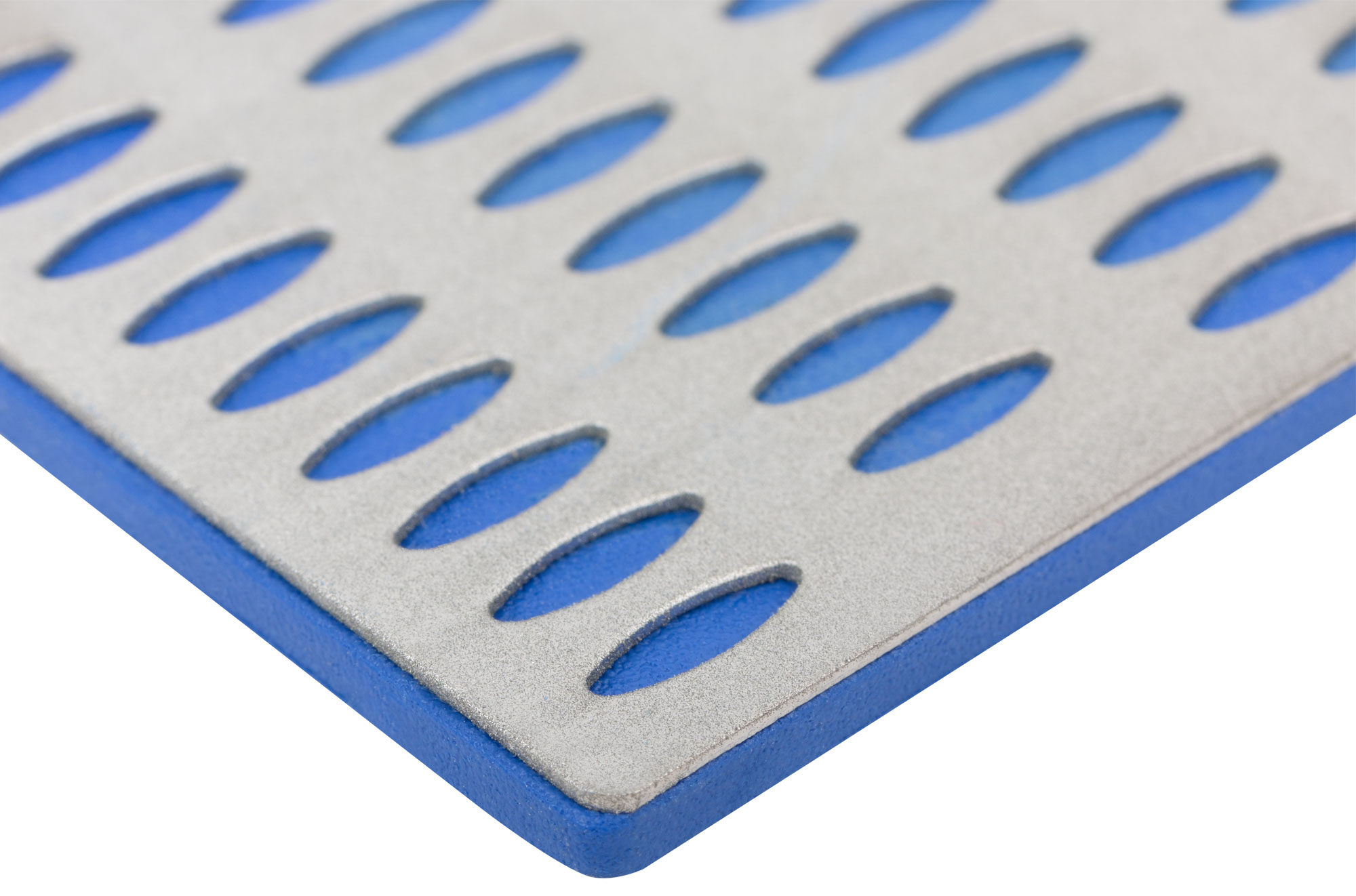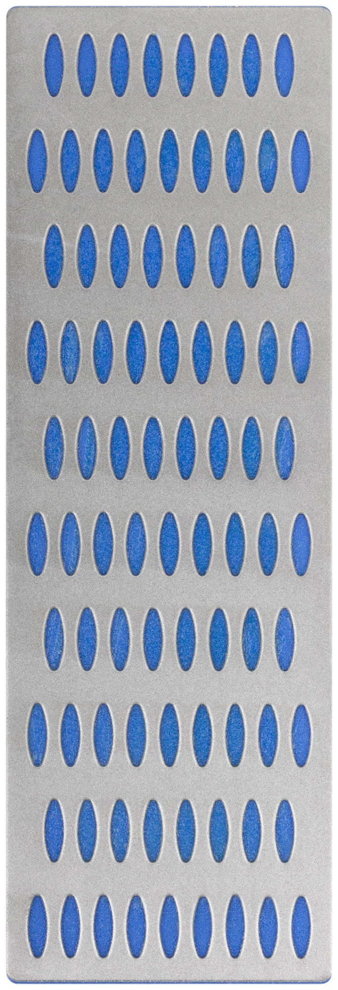 Брусок выполнен из инструментальной стали и пластика, с покрытием из порошка технических алмазов, что обеспечивает долговечность и эффективность в работе. Упаковка блистер позволяет удобно хранить и защищать брусок.