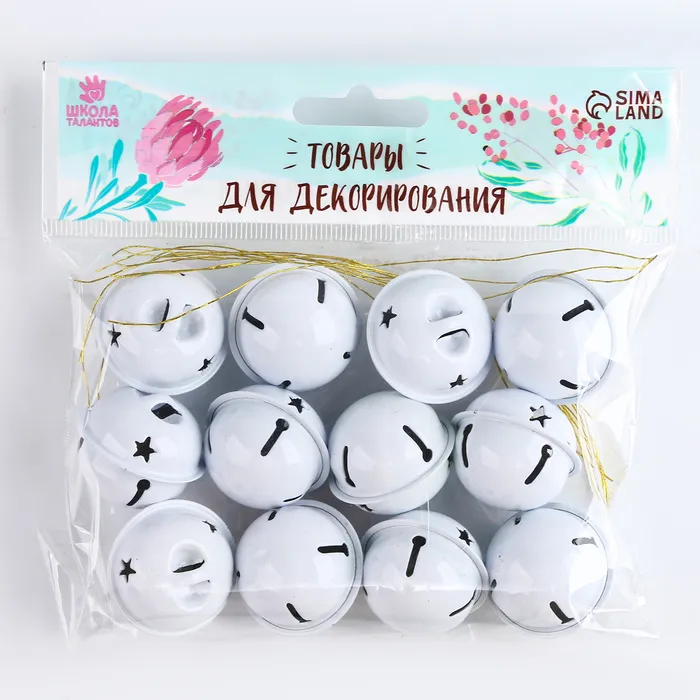 Бубенчики для рукоделия, набор 12 шт., размер 1 шт. — 3 см, белые