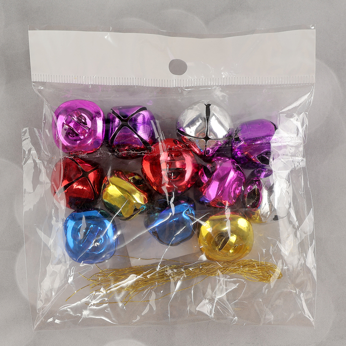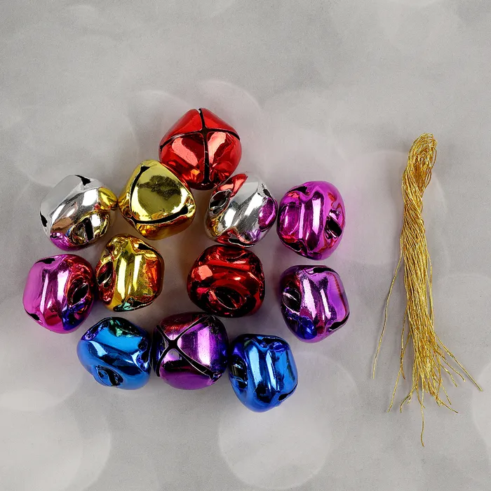Бубенчики, набор 12 шт., размер 1 шт. — 2,5 × 2,5 см, цвет красный, жёлтый, розовый, синий, серебряный — Характеристики