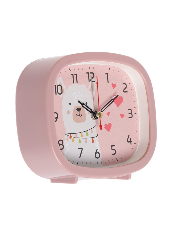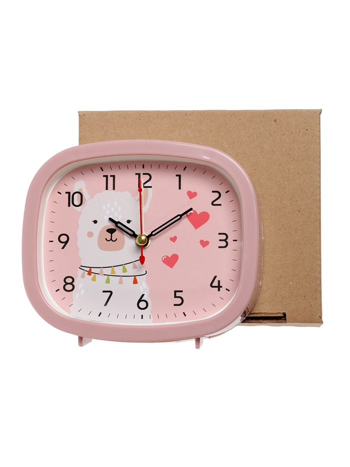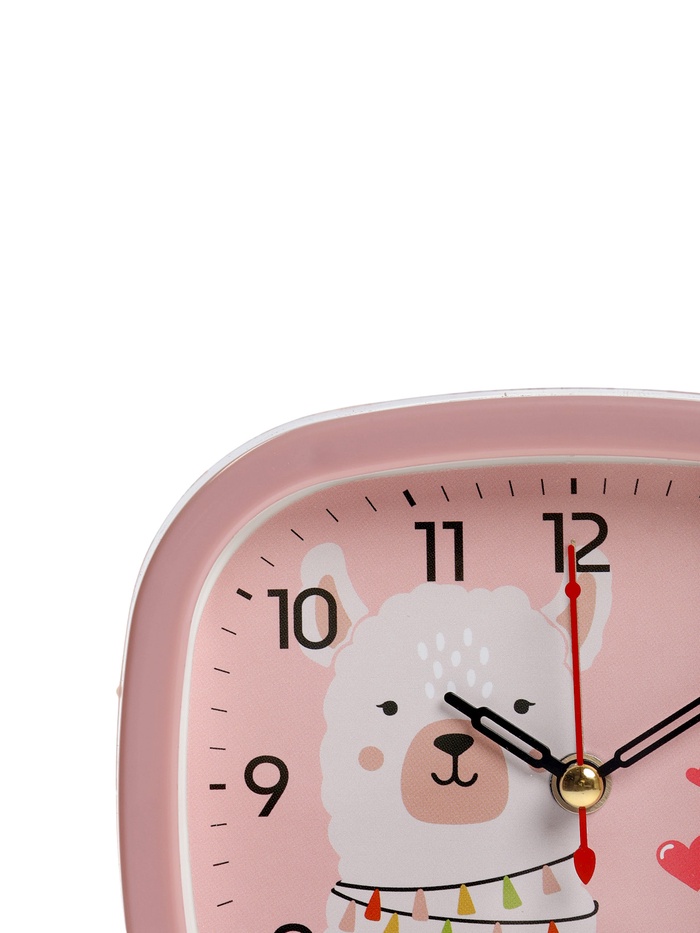 Этот будильник гармонично сочетает функциональность и эстетику, с розовым цветом корпуса и циферблата, который облегчает считывание времени в тёплой, дружелюбной обстановке. Изображение альпаки, выполненное в нежных тонах, символизирует мягкость и дружбу, вдохновляя на позитивное начало дня и снижая утреннее напряжение.