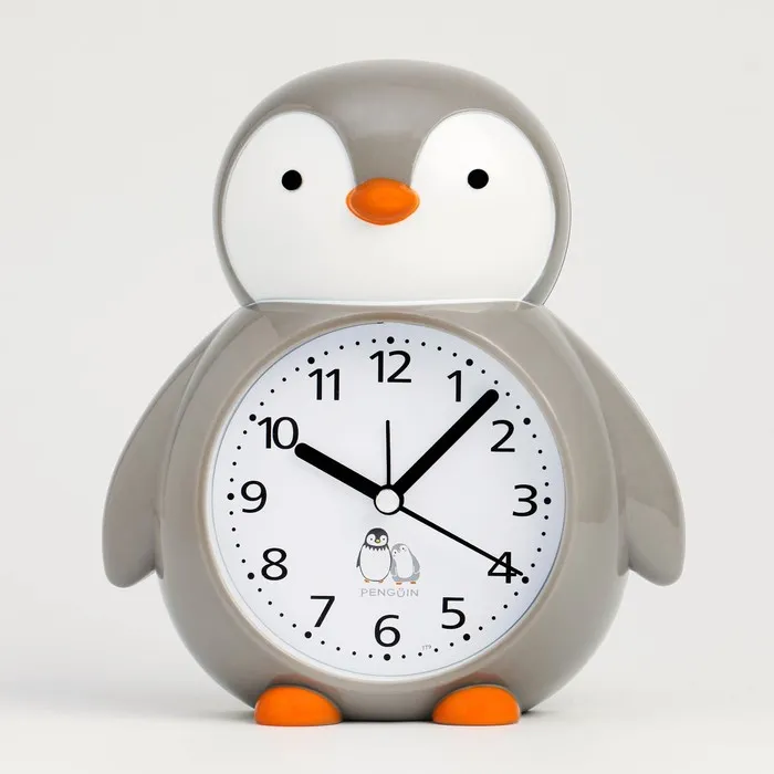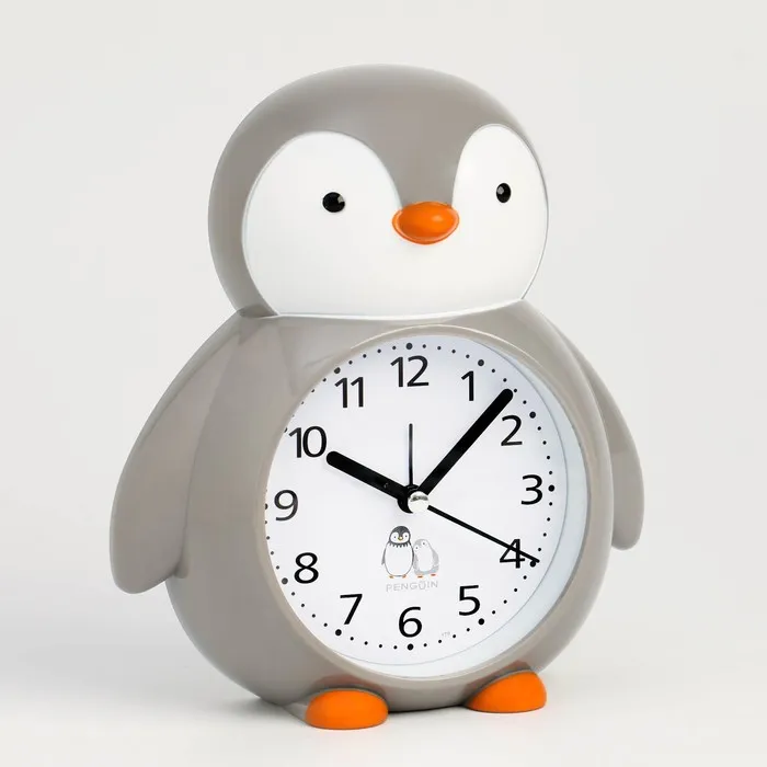 Часы с будильником представлены в современном дизайне в форме милого пингвиненка, они отлично впишутся в ваш интерьер. Интерьерные часы станут прекрасным декором для дома и дачи, их можно поставить как на прикроватную тумбочку в спальне, детской комнате, гостиной так и на стол или на комод в зале, холле или на кухне. Будильник настольный имеет кварцевый механизм, который гарантирует высокую точность хода. Часы настольные обладают громким будильником, ребенку и вам будет комфортно просыпаться, на работу и в школу. Будильник на батарейках не требует частой замены батареек благодаря экономичному механизму.