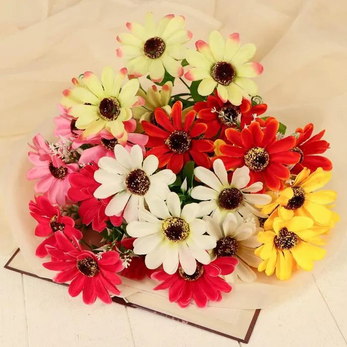 Подарите своему дому яркость и стиль с мини-букетом «Арктотис». Искусственные цветы не требуют ухода, но длительное время сохраняют свежесть и эстетичный вид, что делает их идеальными для оживления любого пространства.