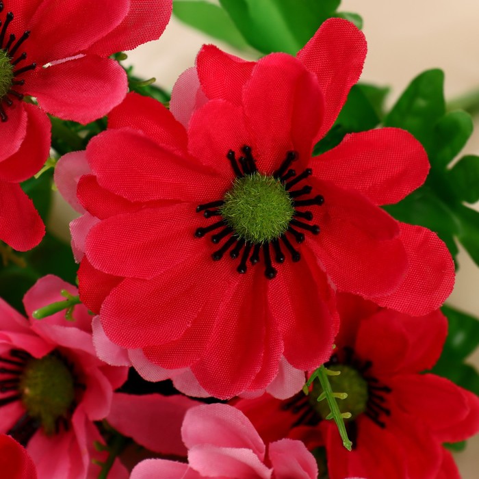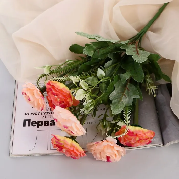 - Текстильные лепестки создают естественный вид, почти неотличимый от живых цветов.
