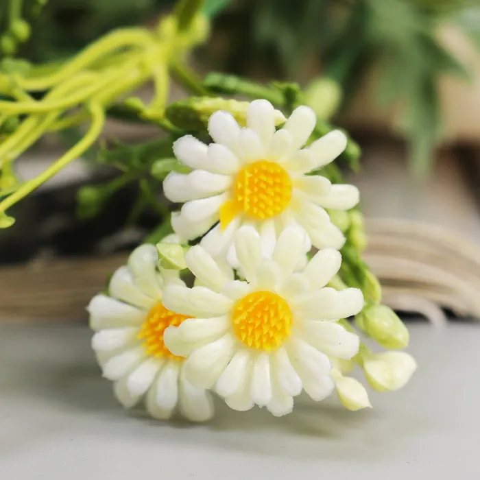 Букет «Ромашка галант леди» — стильное решение для вашего интерьера. Белоснежные цветы в сочетании с изящной формой делают этот букет подходящим для любого случая. Высота букета 28 см, что идеально подходит для декора. Пластиковые стебли и цветы обеспечивают долговечность и практичность.