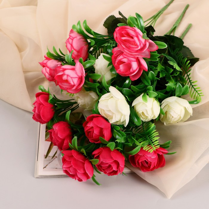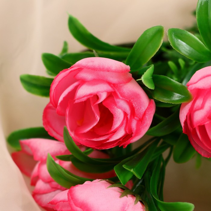 - Естественный вид и прочность: Лепестки выглядят натурально, передают нежную структуру живого цветка. Стебли из пластика сохраняют форму, не гнутся под весом бутонов. Композиция устойчива к выцветанию.