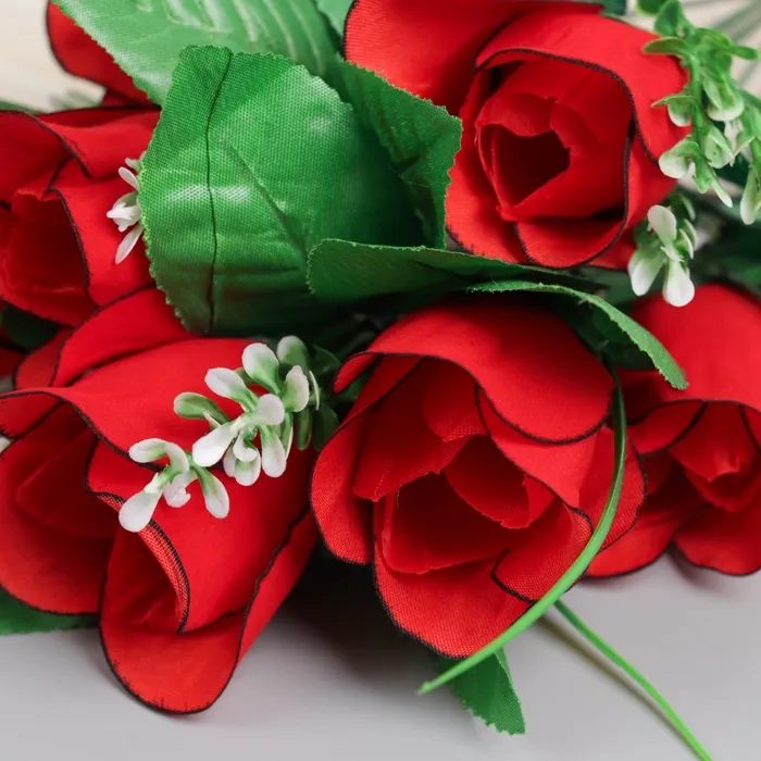 Букет искусственный «Роза с листьями и зеленью», 31 см, красный — Характеристики
